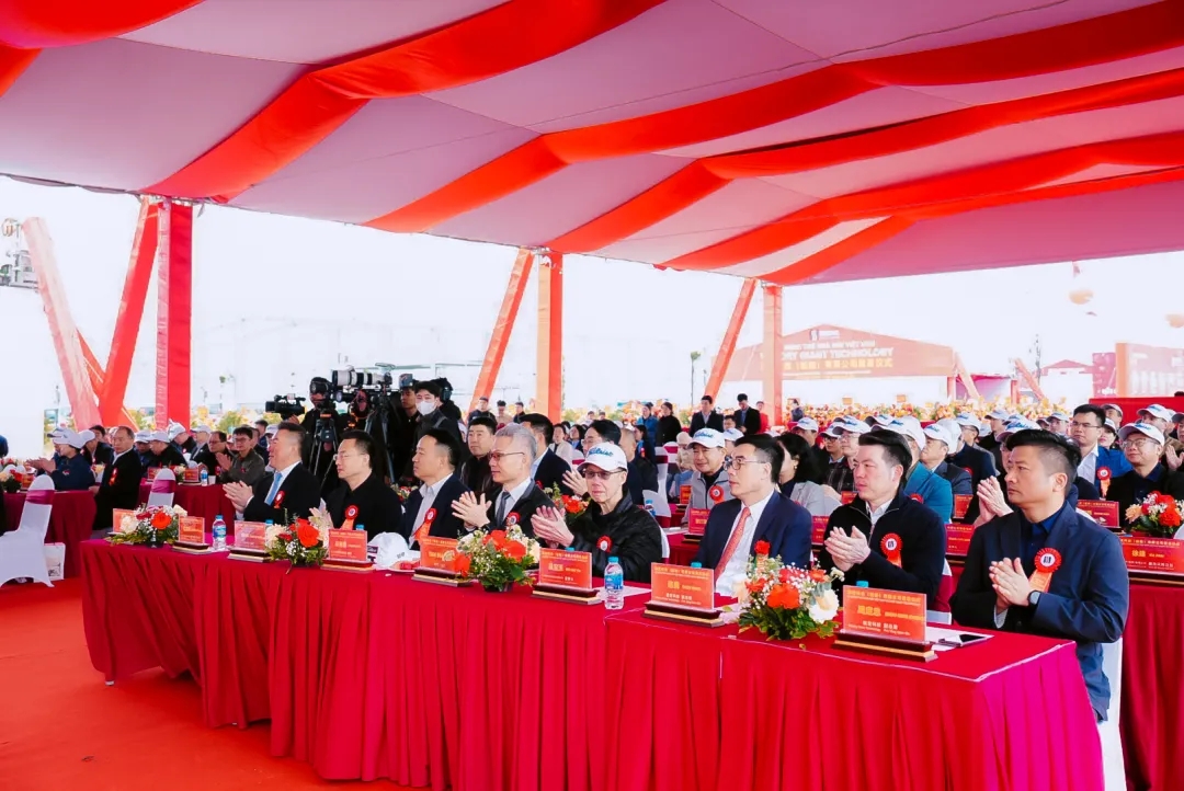 破土呈祥瑞,宏业启新程。2025年3月30日上午,星空游戏科技(越南)有限公司奠基仪式在越南北宁省VSIP二期工业园隆重举行。越共中央候补委员、北宁省委副书记、北宁省政府主席王国俊,北宁省VSIP工业区副总经理裴登宣,星空游戏科技董事长陈涛、总裁赵启祥等公司领导出席仪式。富士康、歌尔科技、智易科技、啓碁科技、正文科技、蓝微电子、德赛电池等客户代表,生益科技、台光、斗山材料、华正新材、麦德美、安美特、杜邦、太阳油墨、鼎泰高科、三菱电机、Schmoll、大族数控、芯碁微装、保德科技等41家合作伙伴,共计约150人应邀共同见证这一重要时刻。